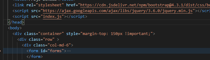 Ekledik. ve index.js adında bir javascript dosyası oluşturduk bu kısmı onun içinde yapacağız.Oluşturduğumuz dosyanın yolunu da head kısmına ekliyoruz.