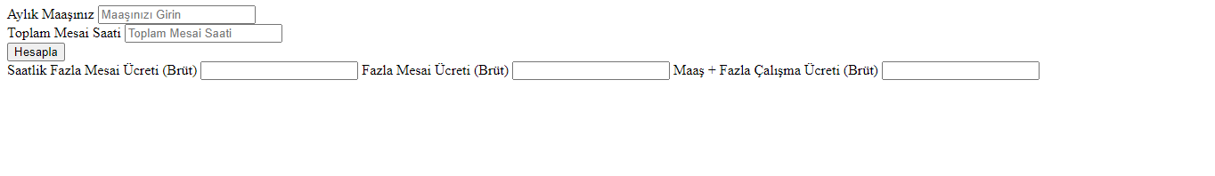 <label for=”maas_mesai”>Maaş + Fazla Çalışma Ücreti (Brüt)</label>