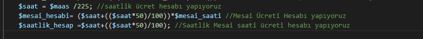 $saat = $maas /225; //saatlik ücret hesabı yapıyoruz