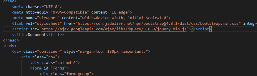 Form kısmını col-md-6 ile basacağımız kısımları ise col-md-4 ile oluşturuyoruz ve elde ettiğimiz görüntü bu şekilde oluyor ve son bir kısım kaldı düzeltmemiz görüntü olarak son dokunuşumuz ise style vereceğiz container divine ve yukarıdan biraz aşşağı indirmemiz gerekecek.